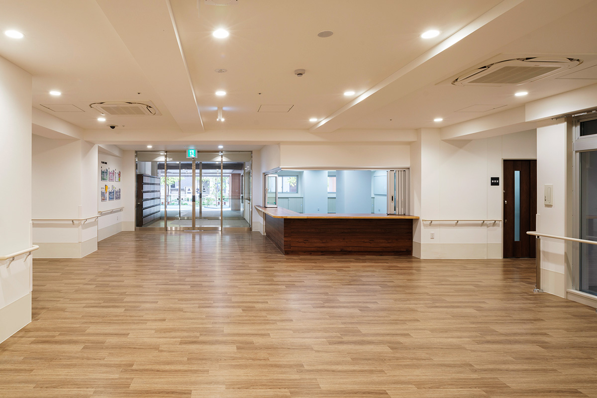 特別養護老人ホームに都市型軽費老人ホームとケアハウスを併設する高齢者複合施設で、幅広い介護度や費用負担に応じた住まいとサービスをご提供できることが特徴です。広々とした館内やピロティでは、入居者様と地域の方々が日常的に交流できるようなイベントや、子ども食堂の実施を予定しています。地域における福祉の拠点として、どなたでも気軽にお立ち寄りいただける開かれた施設をめざしています。